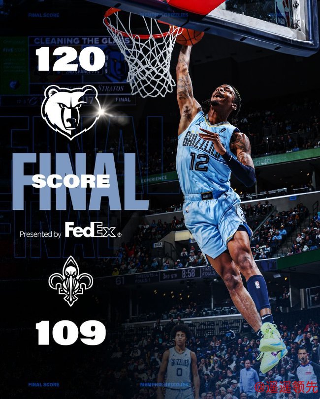 灰熊(13-7):莫兰特27分3篮板7助攻3抢断、贾伦-杰克逊23分8篮板、阿尔达玛20分6篮板4助攻、韦尔斯13分6篮板3助攻、斯玛特11分4篮板6助攻、