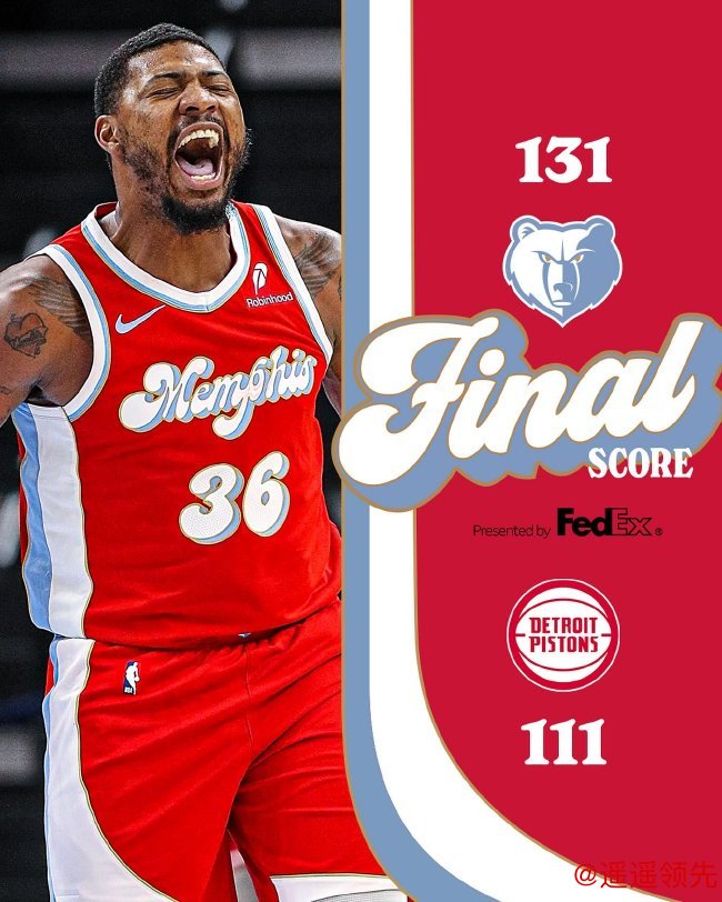 灰熊大胜取得四连胜,12胜7负排在西部第四。